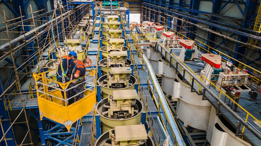 - Ore extraction through industrial techniques and heavy machinery